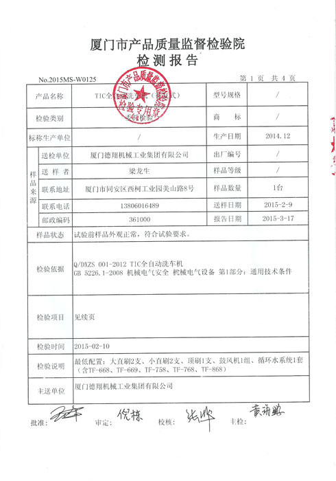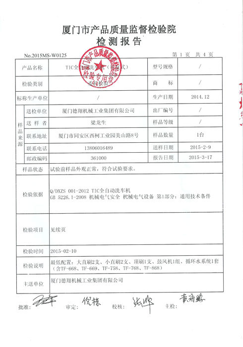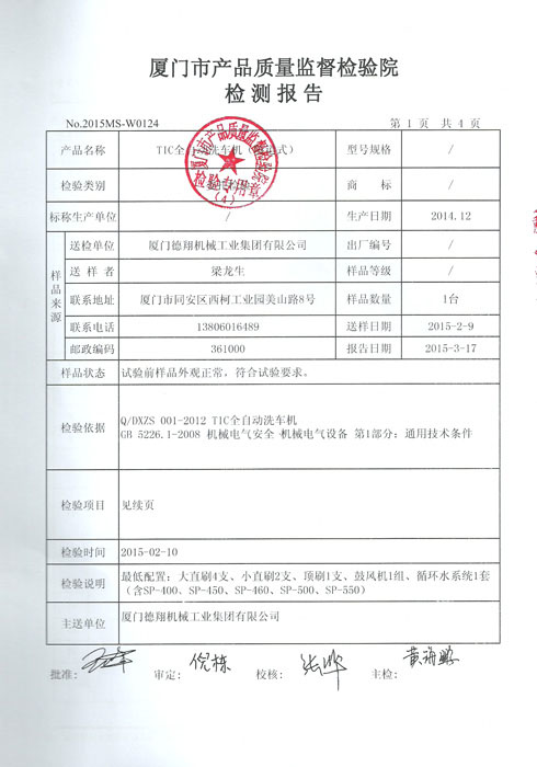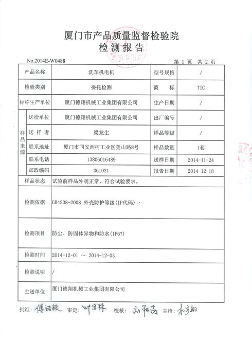 質(zhì)量監(jiān)督檢測報告-洗車機電機