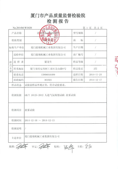 質(zhì)量監(jiān)督檢測報告