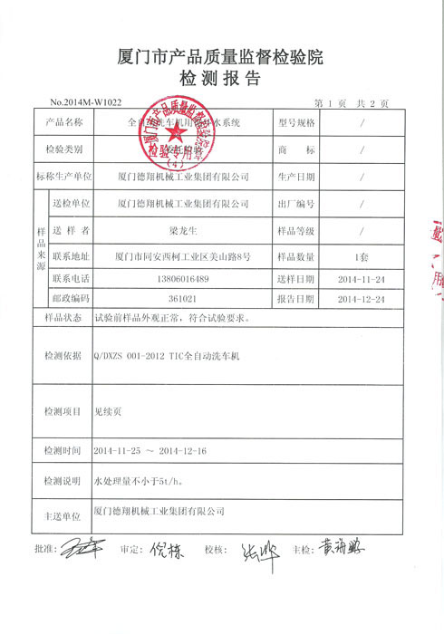 洗車機循環(huán)水系統(tǒng)檢測報告